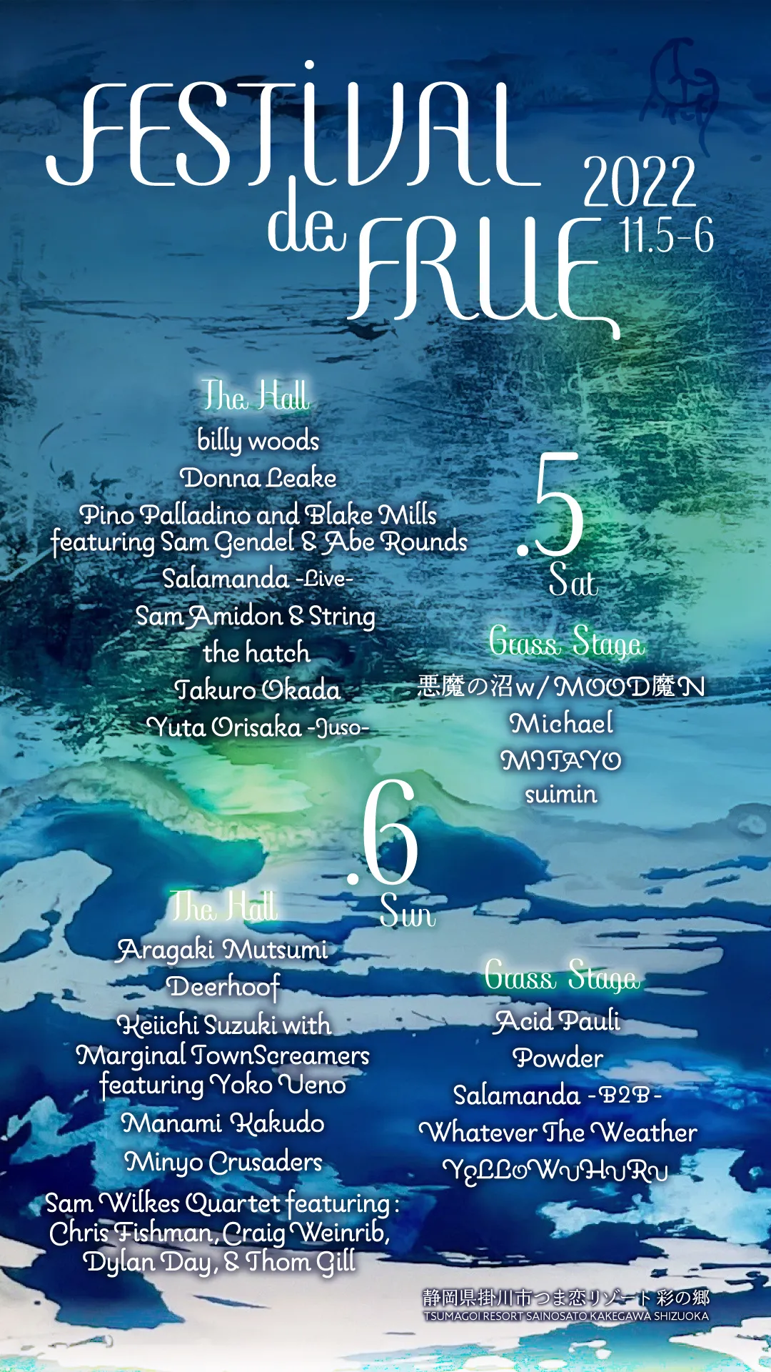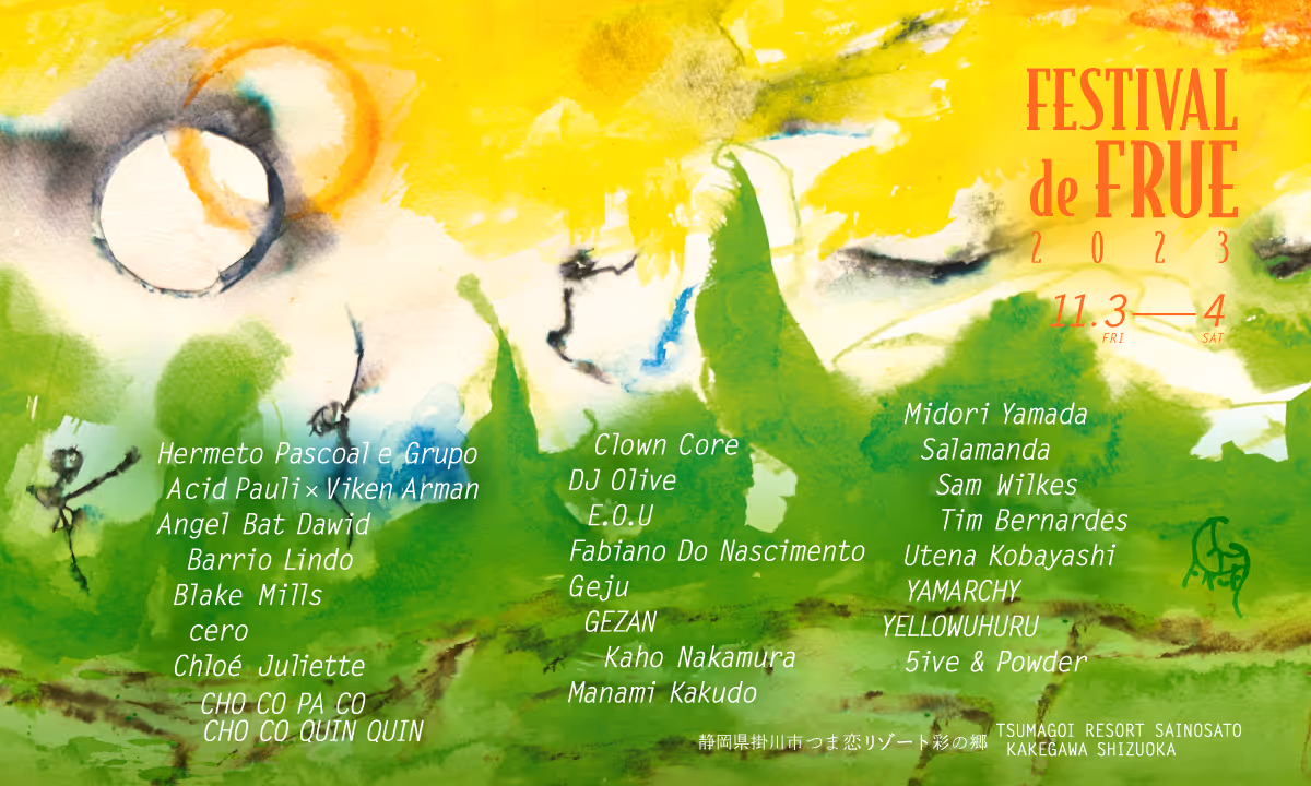 “魂の震える音楽体験” というコンセプトの下、FRUE(フルー)という “パーティ” を2012年3月よりスタートしました。 ジャズ、ロック、ワールド、テクノ、電子音楽など、様々な音楽のジャンルの中から、強く、深い、そして濃い精神性を携えているミュージシャンを、世界各国から日本に招聘しています。